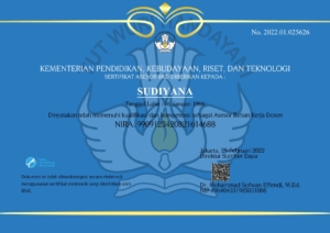 Pada tanggal 25 Februari 2022, Dr. Sudiyana, SH., M.Hum telah mendapatkan sertifikat sebagai assesor BKD (Beban Kinerja Dosen) diluar tugas sebagai dosen Fakultas Hukum Universitas Janabadra yang diberikan oleh Kementrian Pendidikan, Kebudayaan, Riset, dan Teknologi. Dan telah dinyatakan memenuhi kualifikasi dan kompetensi sebagai Assesor BKD: NIRA 9909123420821614688.