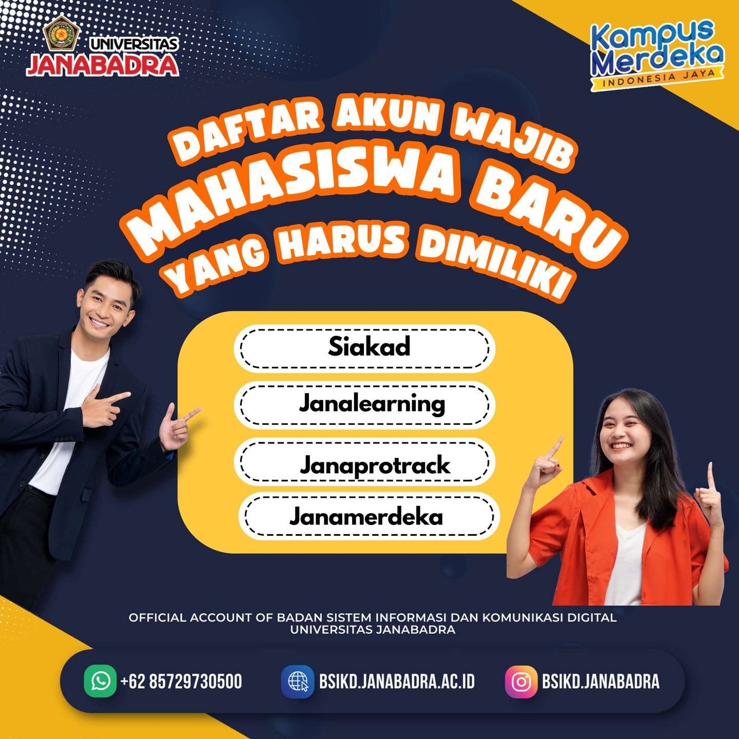 Halo semua, bagi para peserta maba yang sudah mendaftarkan diri di Fakultas Hukum Universitas Janabadra ataupun bagi calon mahasiswa yang akan segera mendaftar diharapkan wajib untuk memiliki 4 akun selama menjadi mahasiswa di Fakultas Hukum Universitas Janabadra. Hal ini, dengan tujuan agar mahasiswa Fakultas Hukum Universitas Janabadra bisa mengikuti kegiatan pembelajaran dengan baik dan efisien.