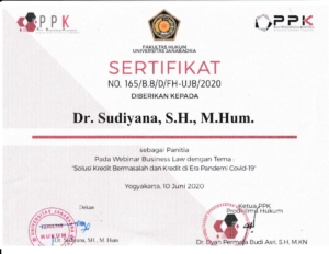 Pada tanggal 10 Juni 2020, Dr. Sudiyana, SH., M.Hum sebagai Panitia pada Webinar Business Law dengan tema “Solusi Kredit Bermasalah dan Kredit di Era Pandemi Covid-19”, yang diadakan oleh PPK Prodi Ilmu Hukum Fakultas Hukum Universitas Janabadra.