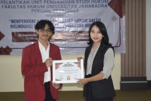 - Menjalin kerjasama yang lebih erat antara Unit Pengabdian Studi Hukum dengan pihak Fakultas Hukum Universitas Janabadra serta stakeholder terkait, guna mendukung terlaksananya program-program yang bermanfaat bagi perkembangan akademik dan pengabdian masyarakat.