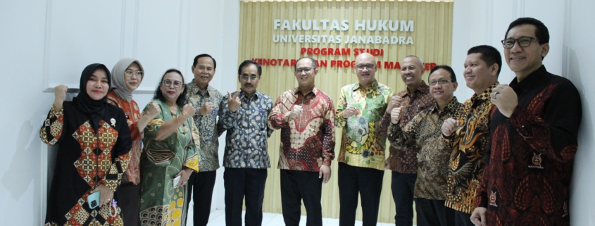 Dalam rangka pengembangan Fakultas Hukum Universitas Janabadra Yogyakarta, maka dilakukan pembukaan Program Studi Kenotariatan Program Magister Fakultas Hukum Universitas Janabadra Yogyakarta. Proses penilaian kesiapan pembukaan Program Studi Kenotariatan Program Magister dilakukan oleh Direktur Jenderal Administrasi Hukum Umum Kementerian Hukum Republik Indonesia yakni Dr. Widodo, SH., MH.