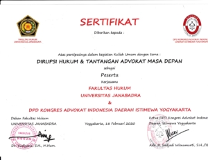 Kegiatan ini diadakan oleh Fakultas Hukum Universitas Janabadra yang telah bekerjasama dengan DPD Kongres Advokat Indonesia Daerah Istimewa Yogyakarta.