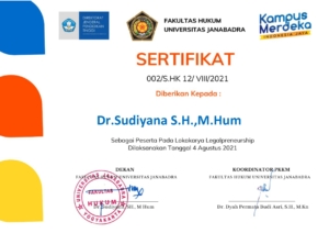 Peserta LokakaryaKegiatan DosenPada tanggal 04 Agustus 2021, Dr. Sudiyana, SH., M.Hum sebagai Peserta pada Lokakarya “Legalpreneurship”, yang diadakan oleh Fakultas Hukum Universitas Janabadra. October 23, 2025/by fh janabadra https://hukum.janabadra.ac.id/wp-content/uploads/2025/10/WhatsApp-Image-2025-10-17-at-12.49.09.jpeg 350 700 fh janabadra https://hukum.janabadra.ac.id/wp-content/uploads/2024/05/fh-300x88.png fh janabadra2025-10-23 09:00:222025-10-23 09:00:22Peserta Lokakarya