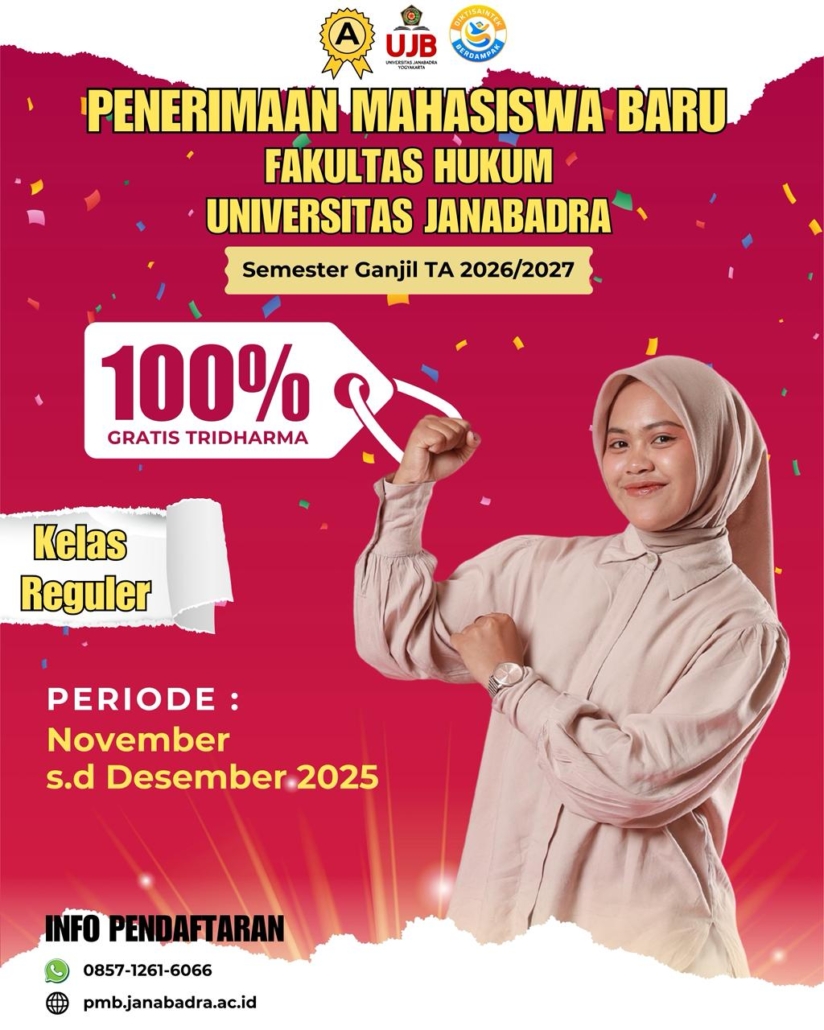 Telah dibuka, Penerimaan Mahasiswa Baru Fakultas Hukum Universitas Janabadra Semester Ganjil 2026/2027