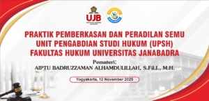 Dalam rangka meningkatkan kompetensi keahlian mahasiswa Fakultas Hukum Universitas Janabadra. Unit Pengabdian Studi Hukum (UPSH) Fakultas Hukum Universitas Janabadra mengadakan kegiatan “Praktik Pemberkasan dan Peradilan Semu”. Kegiatan tersebut dilaksanakan pada hari Rabu, 12 November 2025 dan bertempat di ruang 3.3 Fakultas Hukum Universitas Janabadra. Kegiatan ini dihadiri oleh seluruh anggota Unit Pengabdian Studi Hukum (UPSH) dengan mengundang pemateri Aiptu Badruzzaman Alhamdulillah, S.Fi.I., MH.