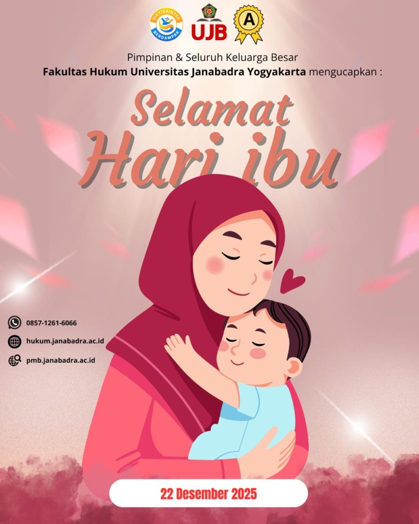 “Kasih Ibu sepanjang masa, tanpa hadirnya sosok Ibu kita tidak akan bisa tumbuh besar dan menjadi mahasiswa dan mahasiswi serta segenap keluarga besar di Fakultas Hukum Universitas Janabadra. Kami ucapkan terimakasih yang sebesar-besarnya atas cinta, kasih, dan pengorbanan yang diberikan. Sehat selalu pahlawanku tercinta.”