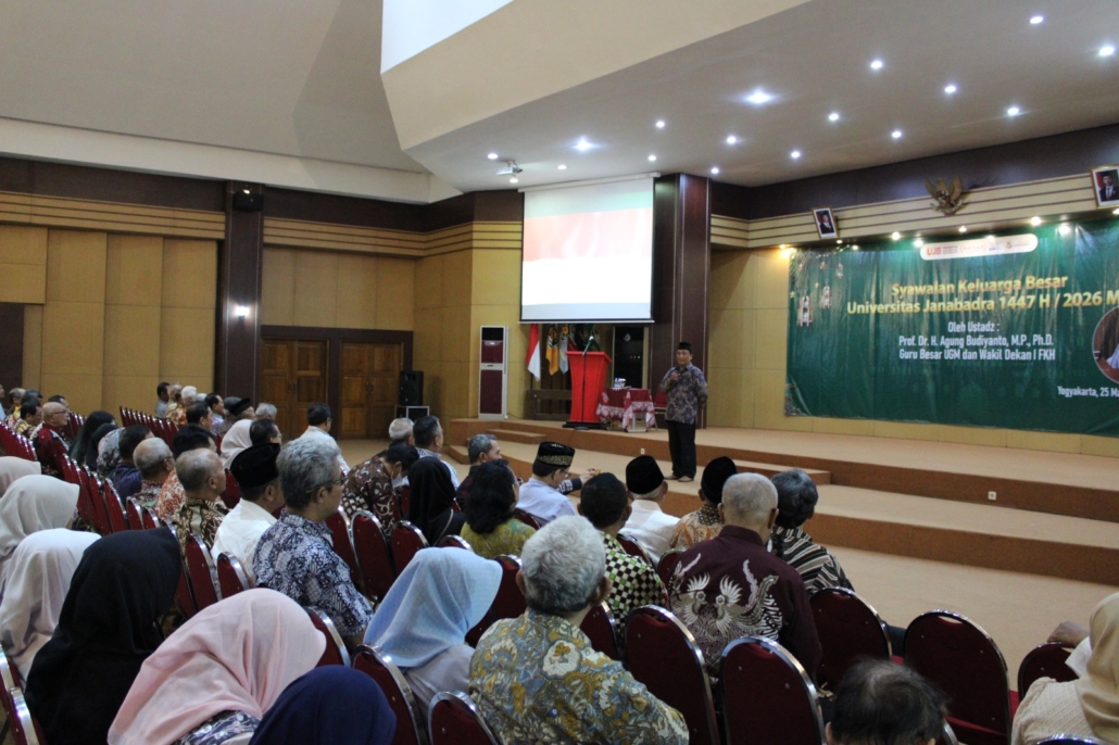 Universitas Janabadra (UJB) Yogyakarta menyelenggarakan Syawalan Keluarga Besar 1 Syawal 1447 H sebagai momentum mempererat silaturahmi sekaligus memperkuat komitmen institusi dalam menghadapi tantangan ekonomi global dan persaingan perguruan tinggi. Acara yang berlangsung khidmat ini digelar pada Rabu (25/03/2026) berlokasi di Auditorium KPH Poerwokoesoemo.